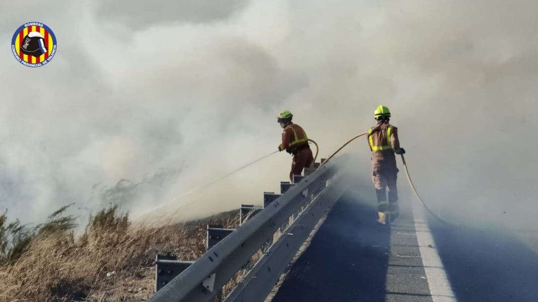 Se ha tenido que producir algún corte de tráfico a la A-38 y se ha recomendado a los vecinos de la localidad de Sollana del cierre de ventanas para evitar la entrada de humo.