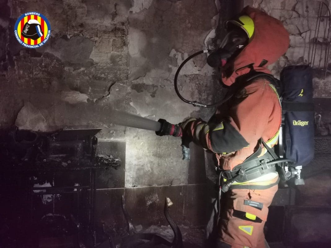 Cuatro personas resultaron afectadas por inhalación de humo ayer en el incendio de una vivienda en la calle Madre María Gallart de Oliva.