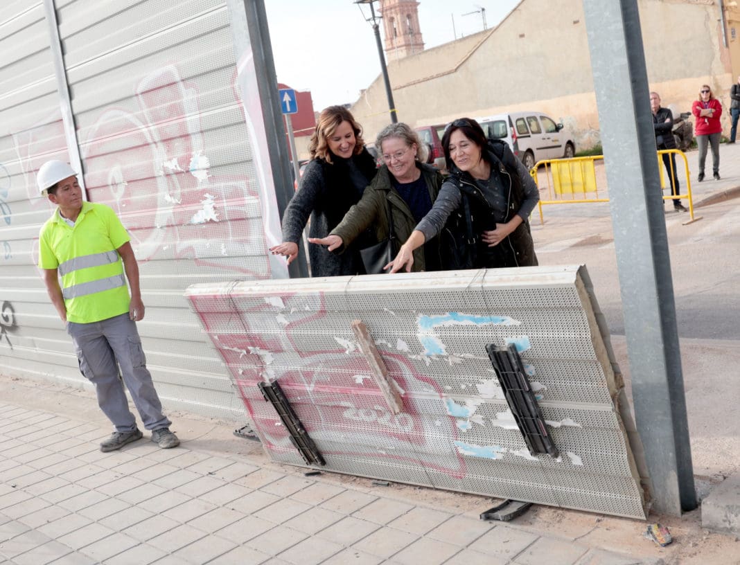 El Ayuntamiento de València, a través del Área de Urbanismo, ha iniciado la retirada de la pantalla acústica ubicada en Benifaraig, que separa actualmente la calle Palma de Gandia de la travesía del Camino de Moncada (CV-315).