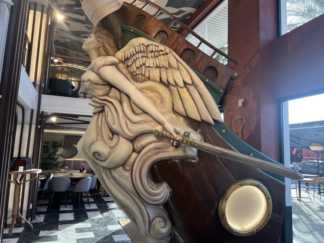 En plena semana fallera, la interiorista valenciana Laura Yerpes, ha querido presentar el homenaje a Valencia que ha creado en forma de falla dentro de un nuevo restaurante. Se trata de «un diseño luminoso y vanguardista presidido por un precioso mascarón de un barco de unos 3 metros de altura».
