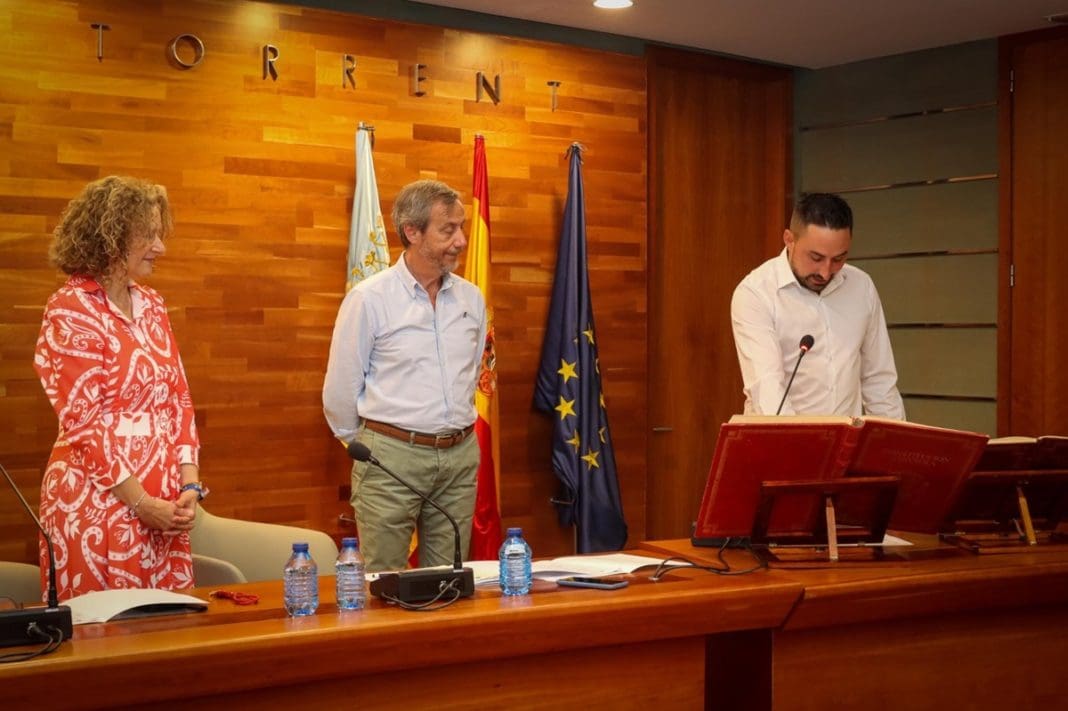 El Ayuntamiento de Torrent ha celebrado un pleno extraordinario, con la finalidad de nombrar y toma de posesión del nuevo concejal José Daniel Iserte Carbó por el grupo municipal socialista que ocupa el lugar de la recientemente fallecida Esmeralda Torres Guillén. Así mismo, en el mismo Pleno se ha dado cuenta de la renuncia por motivos de salud del portavoz del PP y concejal del área de Hacienda y Desarrollo Ecónómico, José Maroto.