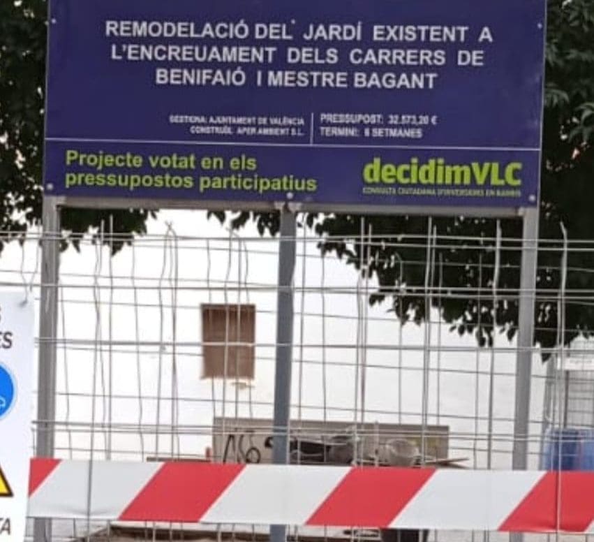 La Concejalía de Ecología Urbana ha iniciado las obras de remodelación de un pequeño jardín ubicado en el cruce de las calles Benifaió, Mestre Bagant y Macastre, en el centro histórico del barrio de Campanar.