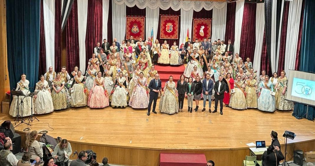 Tras ello subieron al escenario gran parte de los presidentes, tanto mayores como infantiles, y falleras mayores e infantiles que han ocupado desde 1981 hasta hoy el cargo de máximas representantes de la Junta Local Fallera. Todos ellos recibieron de manos de la actual presidenta Pepa Cano, la insignia y la placa conmemorativa del 50 aniversario.