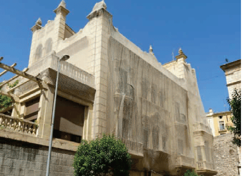 Estas fachadas presentan diversas patologías, por lo que actualmente el edificio se encuentra envuelto con una malla. Esto se debe al riesgo de desprendimientos de algunos de los elementos ornamentales.