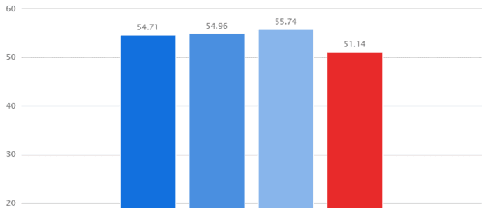 Per províncies, en la d’Alacant creix del 34,90% de 2014 al 47,93%; a Castelló, del 38,79% al 53,42% i en la de València, passa del 40,20% al 52,37% en les europees.