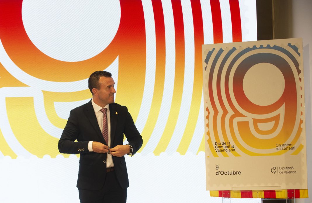 La imagen de este año para el Día de la Comunitat, obra de Beatriz Rodríguez-Hevia, presenta un sello postal con un número 9 y ondas expansivas. Estas simbolizan cómo la tradición, la cultura y la forma de ser valencianas se proyectan más allá de su origen. La idea dialoga con el lema ‘On anem, ressonem!’, aludiendo a una identidad que resuena allí donde va.