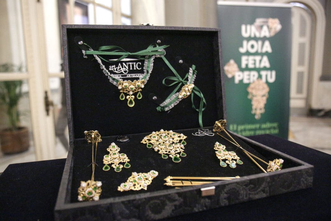 Este adreç marca una fita en la història de la indumentària valenciana, tenint en compte que és la primera vegada que es realitza una joia d’estes característiques. L’orfebre José Alabadí, de Art Antic i l’artesana i dissenyadora Sara Sorribes, de Vidre Sorribes, han sigut els encarregats de donar vida al conjunt que està compost per 7 peces: joia, pendents, pinxos, forquetes, agulla de mantilla, penjoll amb cinta per a coll i manilla.