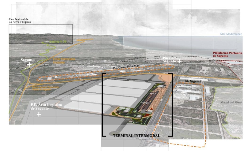 La plataforma intermodal es una infraestructura de transporte y logística situada en la parcela TI de 688.000 metros cuadrados, dentro del área delimitada en el Plan Especial de Ordenación del Área Logística de Sagunto (PE).