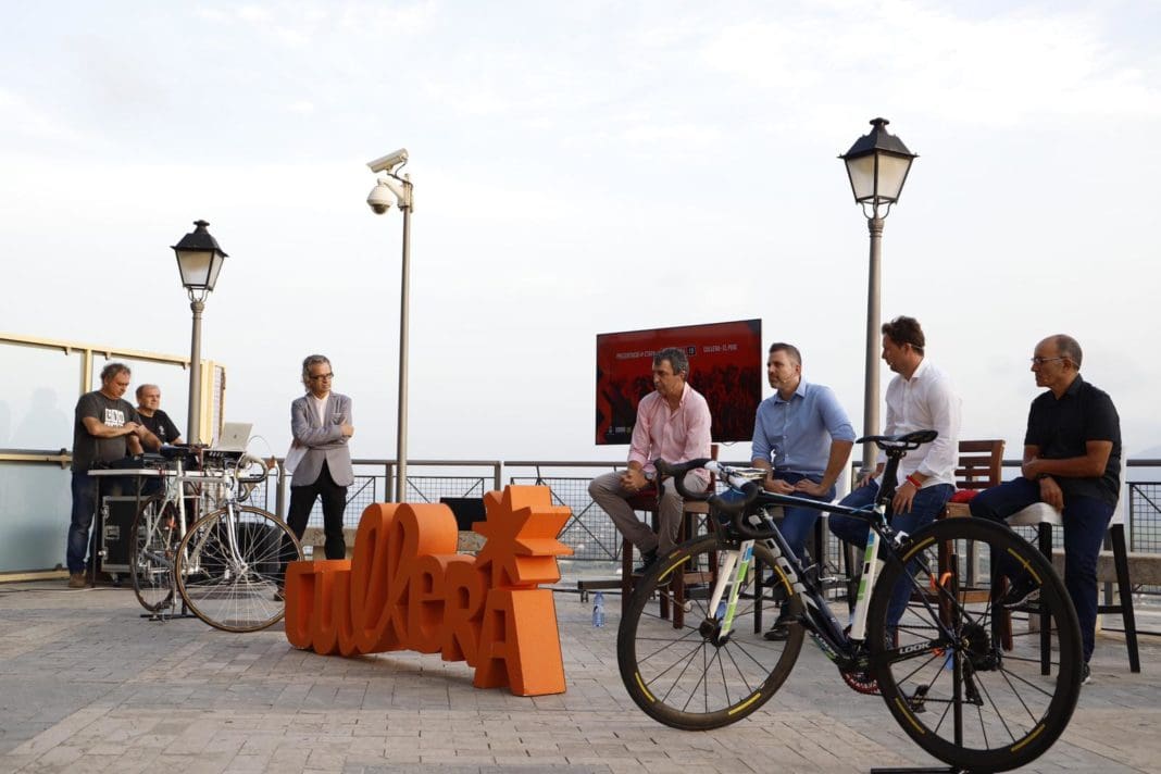 L’esplanada del Santuari del Castell de Cullera serví com a marc incomparable per a donar a conéixer els detalls d’una etapa que arrancarà en la capital turística de la Ribera i finalitza al Puig després d’un recorregut de 177 quilòmetres de perfil principalment pla.