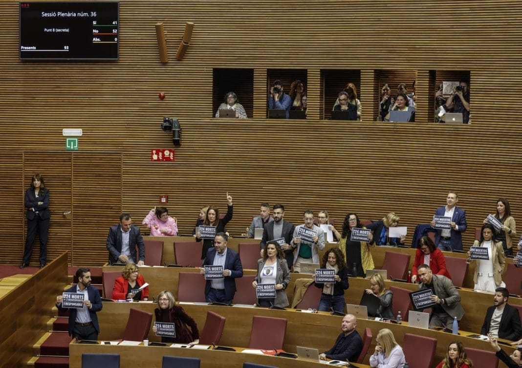 Les Corts Valencianes han rechazado este jueves la propuesta presentada por Compromís para reclamar la dimisión del ‘president’ de la Generalitat, Carlos Mazón, por su gestión de la Dana del pasado 29 de octubre.