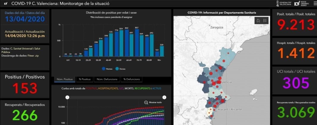 En el tauler s’inclouen gràfics de corbes globals i diàries per a conéixer l’evolució de la situació, així com les gràfiques de la distribució de positius i defuncions per edats i sexe.