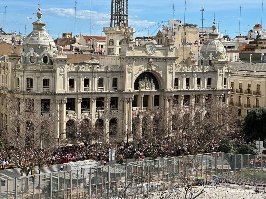 El calor ha provocado que la mascletà de hoy en la plaza del Ayuntamiento de València haya sido sofocante.