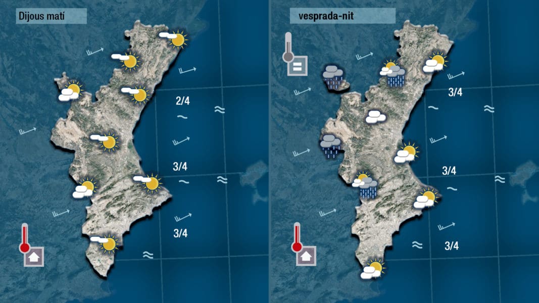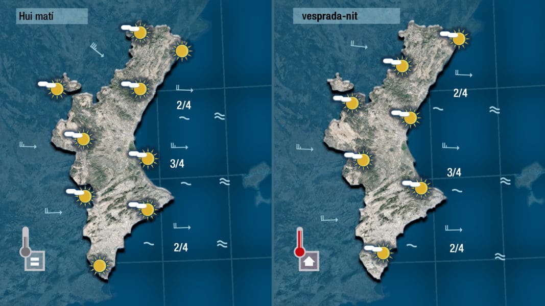 Y de llover lo hará durante la noche y la madrugada, porque el resto del día tendremos alternancia de nubes y claros e incluso temperaturas más altas que las de hoy a la costa y en las comarcas más centrales.