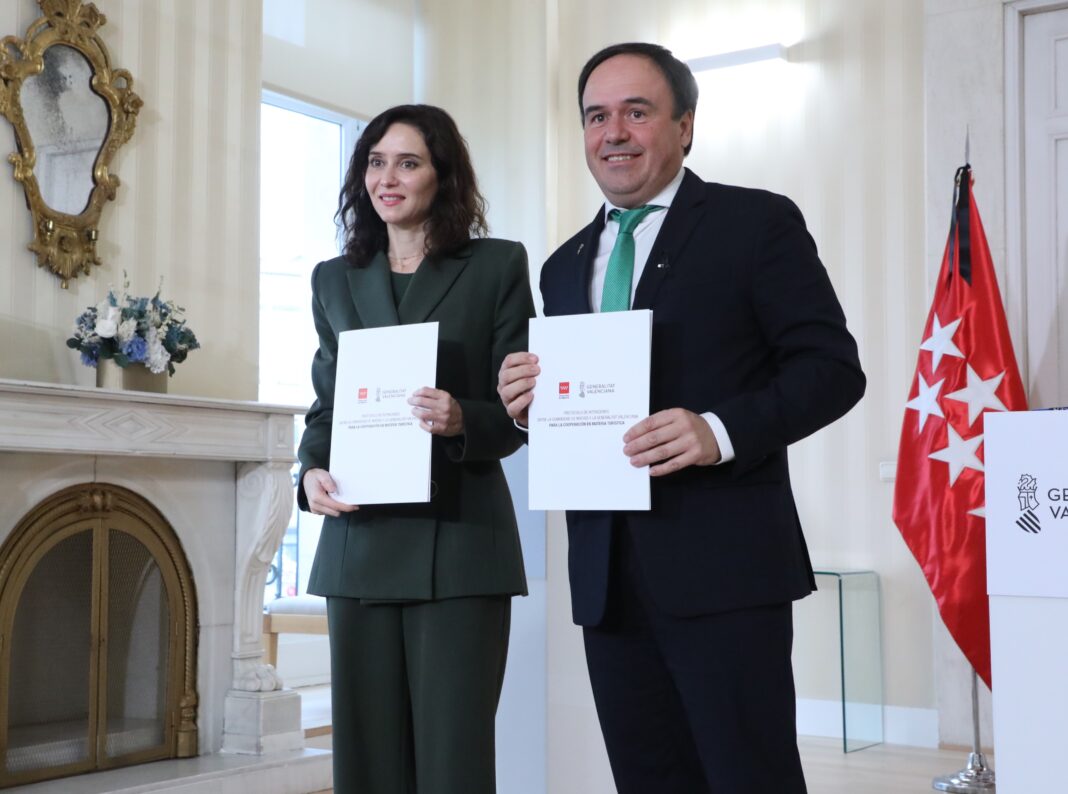 La Comunidad de Madrid y la Comunitat Valenciana han firmado este miércoles un convenio de colaboración para compartir estrategias turísticas y reforzar su proyección internacional, con la meta de atraer a más visitantes mediante acciones coordinadas.