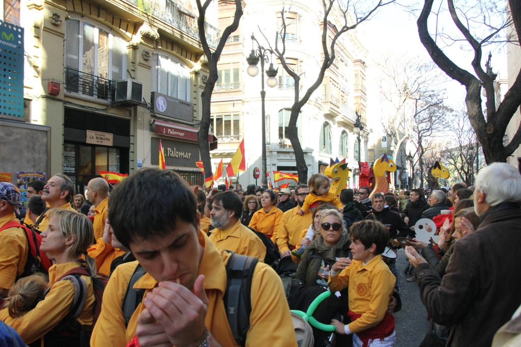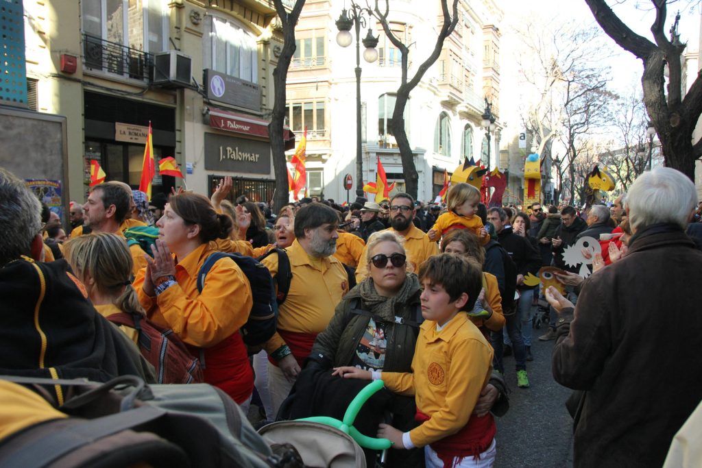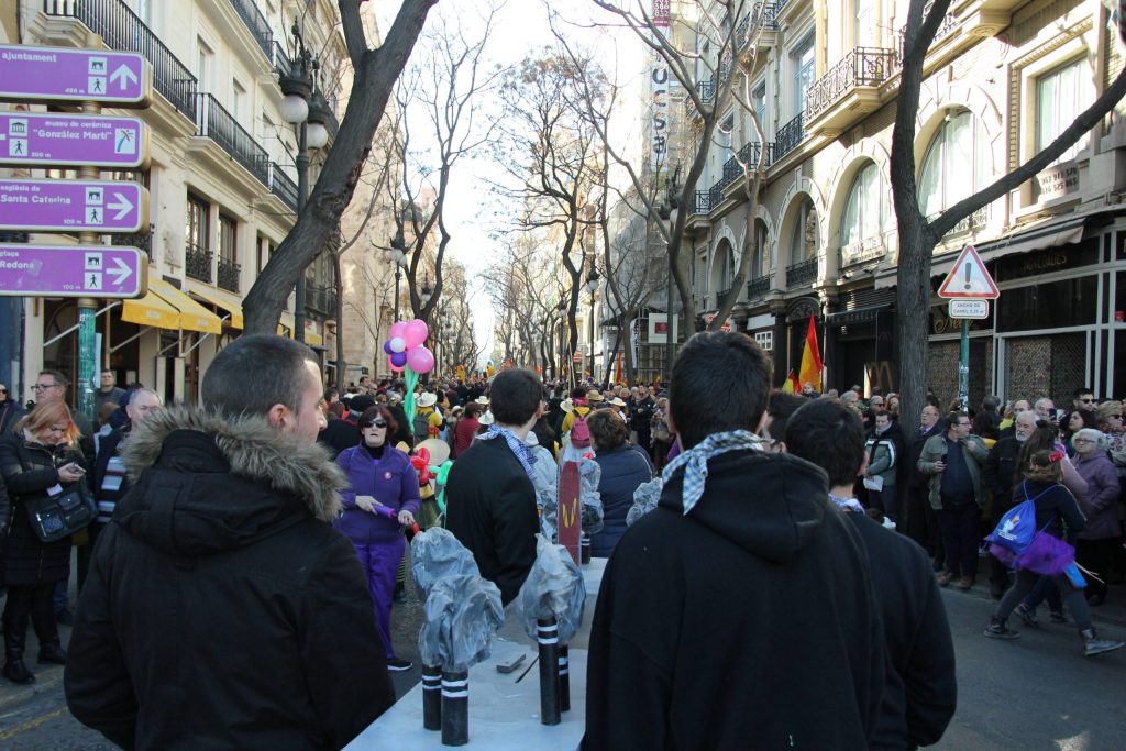 Sota el lema ‘L’horta no es toca’, les ‘magues’ i els seus acompanyants han iniciat la desfilada a les 11.30 hores en el Parterre i han marxat pels carrers de la Pau i Sant Vicent per a finalitzar en la plaça de l’Ajuntament, on, entre el públic, un grup de persones procedents de la concentració d’Espanya Existeix s’ha congregat per a rebre-les entre xiulades, esbroncs i crits de «traïdors» i «catalanistes».