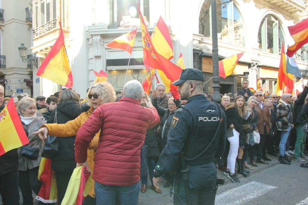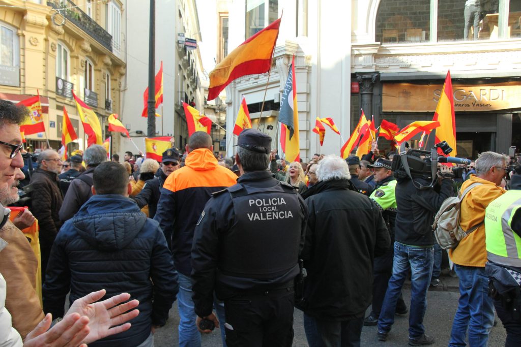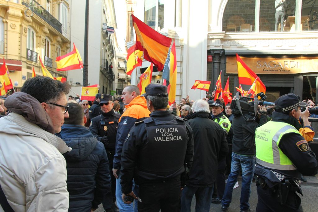 Grups de persones procedents de la concentració convocada per la plataforma Expaña Existe han acudit fins a la plaça de l’Ajuntament durant el desenvolupament de la cavalcada. Allí, han mostrat banderes d’Espanya i han cridat expressions com «Espanya unida mai serà vençuda», «visca el Rei», «fora», «traïdors» i «catalanistes». Així, han rebut a les ‘Magues de Gener’ entre esbroncs i xiulades.
