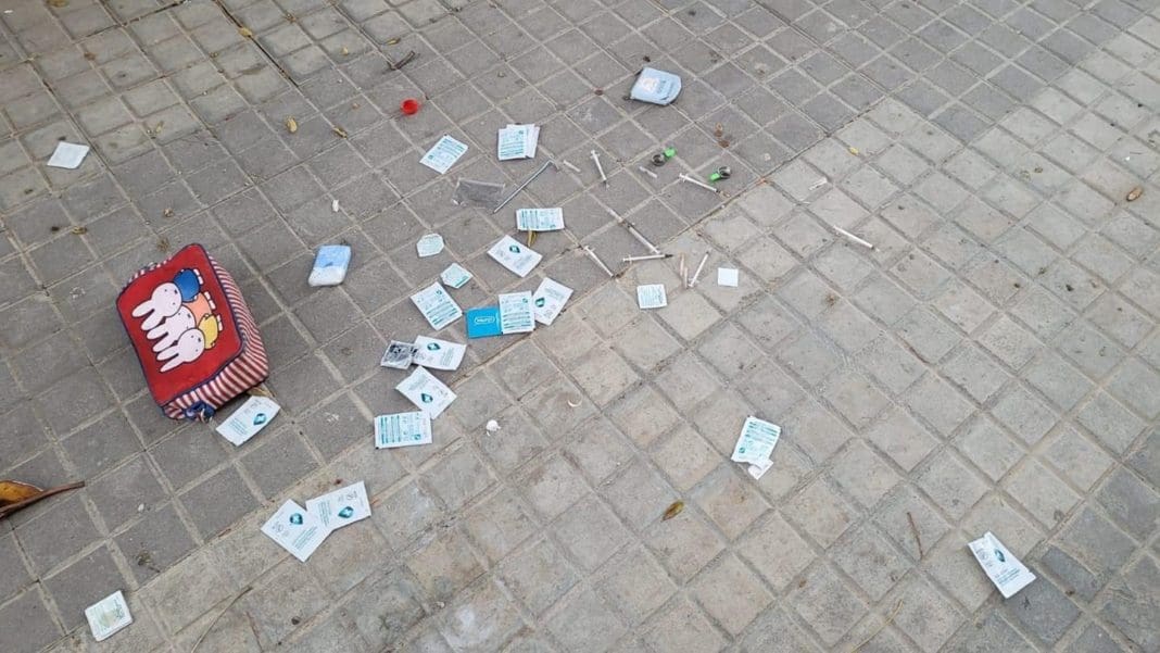 El estado del barrio lo ejemplifican cada día a través de las redes sociales desde el perfil Amics de la Malva, quien este lunes compartió a través de Twitter una fotografía realizada por un vecino del barrio donde se podía apreciar un neceser con jeringuillas y preservativos tirados en una de la zona.