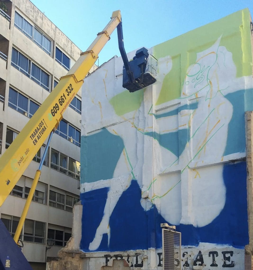 El artista Marcos Chelo y el equipo de Okuda empezaron a pintar la obra este miércoles en la esquina de la calle Mora Zeid con la calle Murillo, a escasos metros de donde se produjo el asesinato de Margarida.