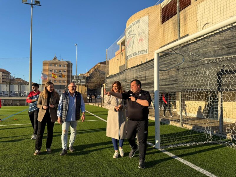 La alcaldesa, María José Catalá, acompañada por la concejala de Deportes, Rocío Gil, ha visitado el complejo deportivo, que cuenta con un campo de fútbol 11 de 107 x 56 metros y otro de fútbol 8 de 55 x 34 metros. En conjunto, el recinto suma cerca de 8.000 metros cuadrados de superficie.
