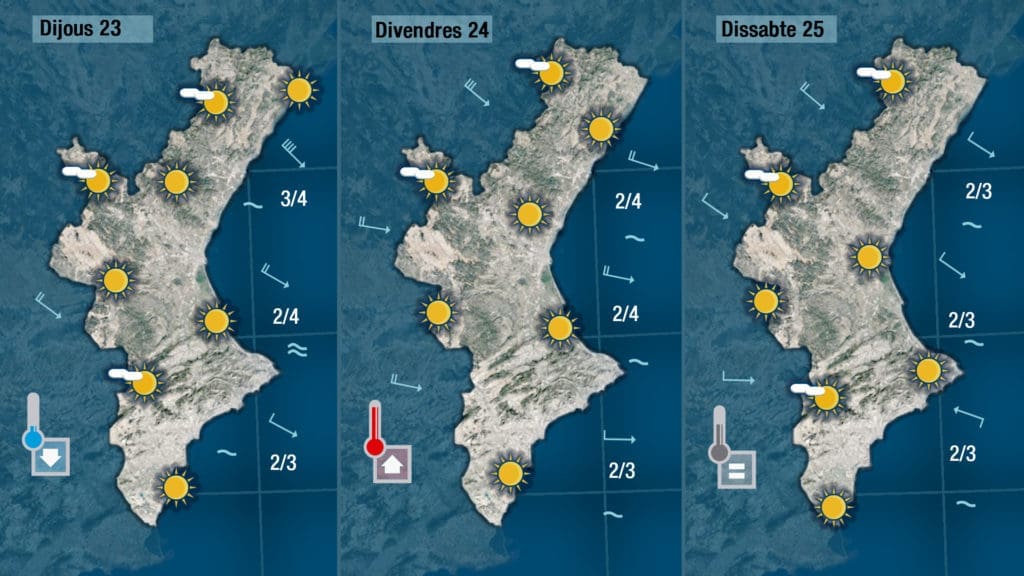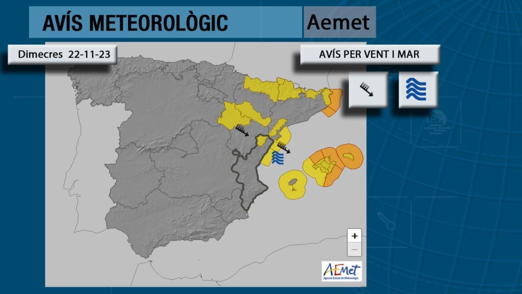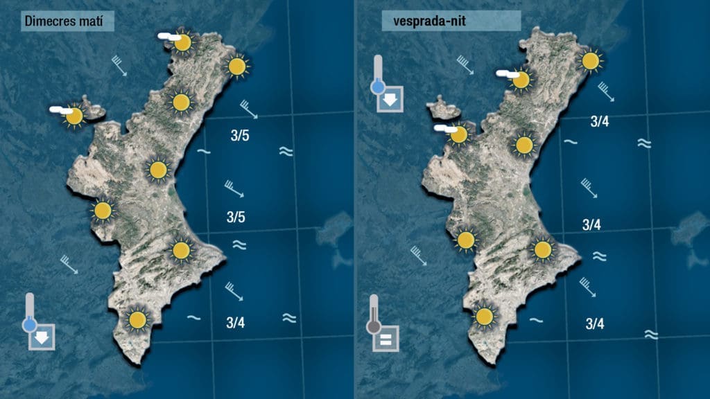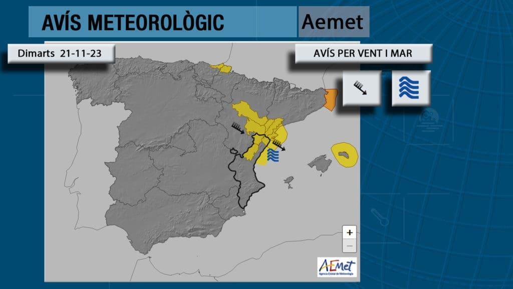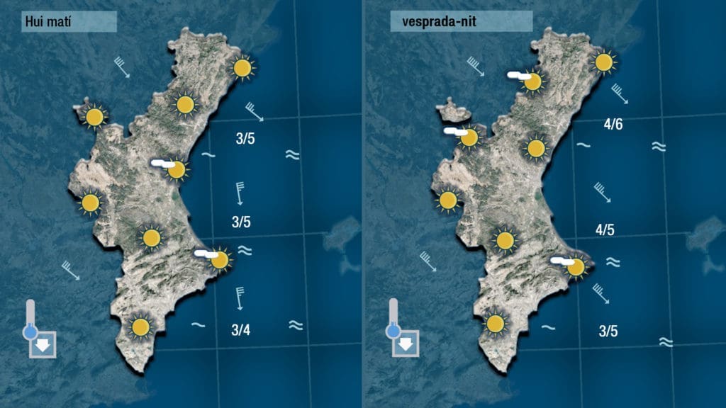 El encargado de acercarnos la masa de aire más fría es el mistral que desde anoche sopla con fuerza en el norte de la Comunitat y ha hecho que Aemet haya puesto la zona en aviso por fuertes vientos y mal mar al litoral del norte de Castelló.