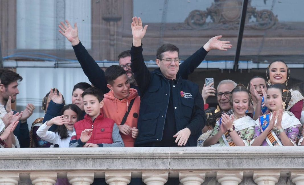 Al finalizar el disparo, los responsables de la pirotecnia han subido hasta el balcón del Ayuntamiento, donde han saludado a las falleras mayores y, seguidamente, al asomarse al balcón, han recibido una calurosa ovación por parte del público presente en la plaza.