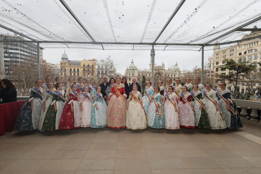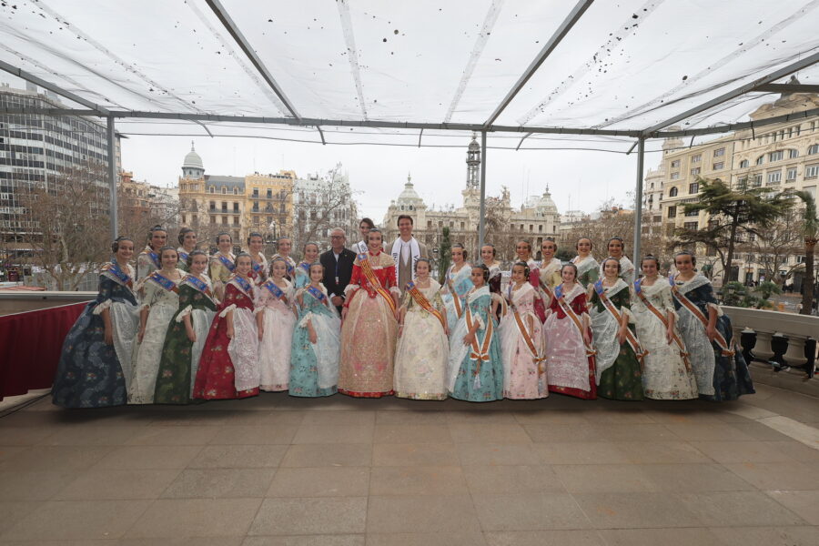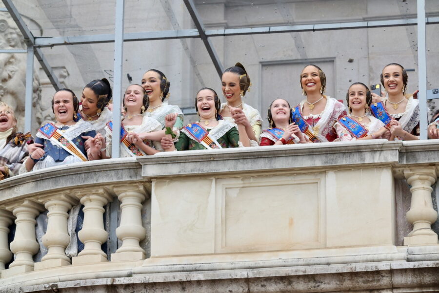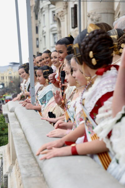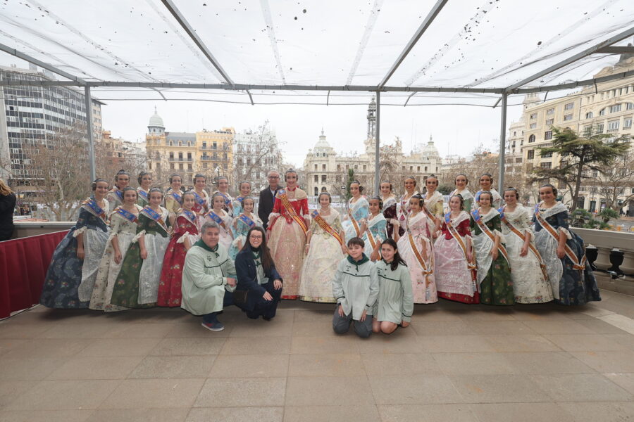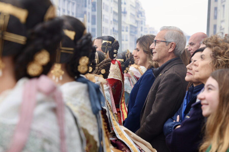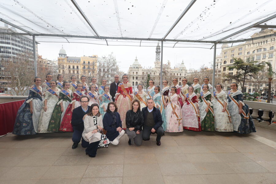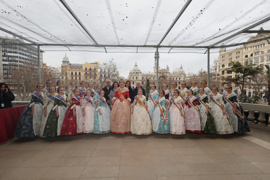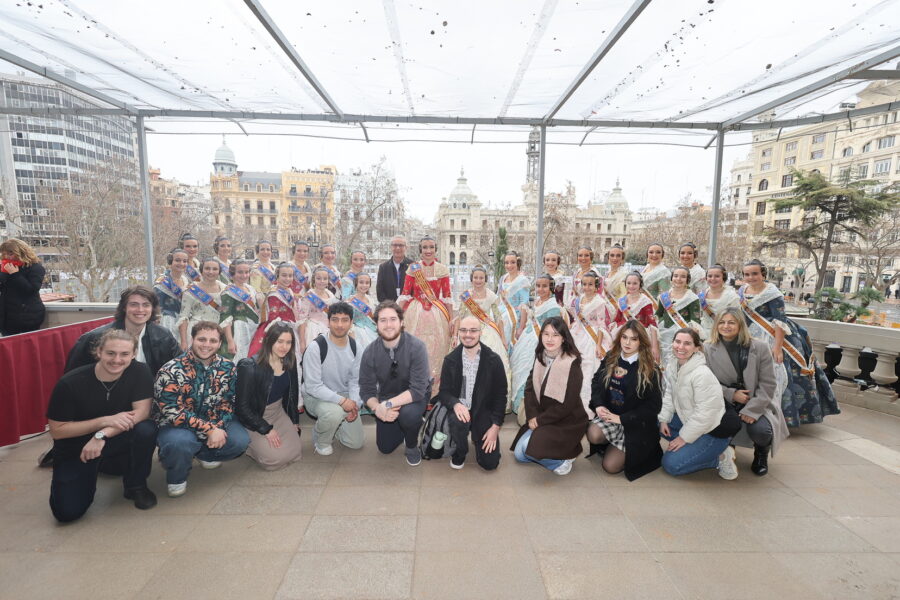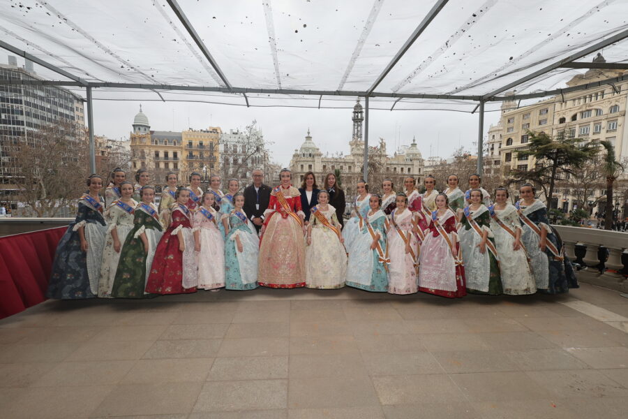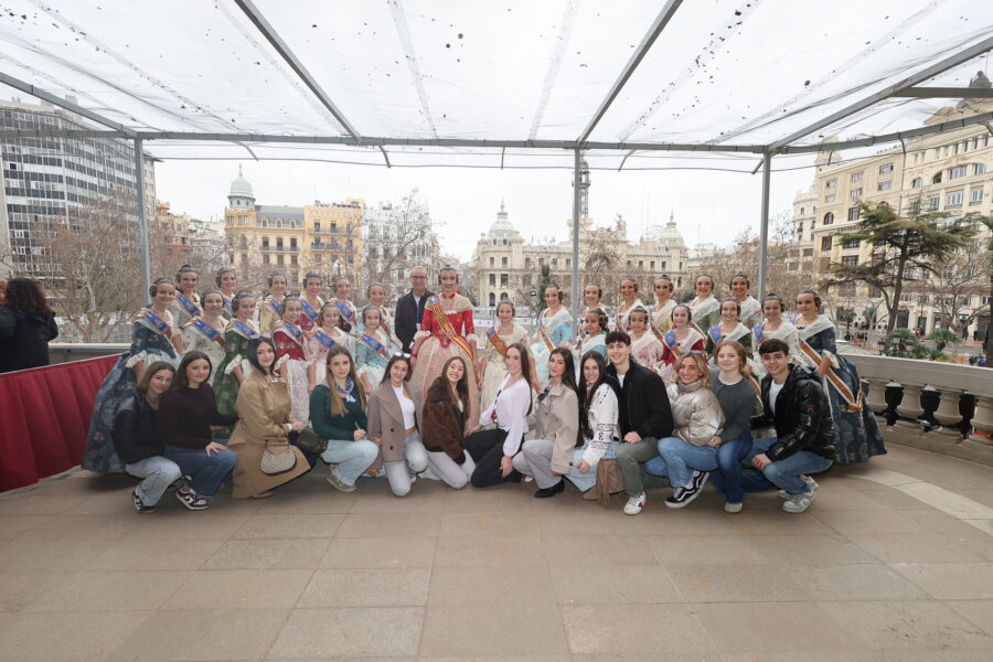 En el balcón de la Casa Consistorial han asistido como invitadas la mantenedora de la fallera mayor infantil, Cuchita Lluch, así como representantes del Binomio Universidad-Ciudad, el Club de Gimnasia Aeróbica, el Valencia Club de Fútbol Femenino, Miss Valencia y Mr- RNB Valencia 2026, además de integrantes de Berklee València.