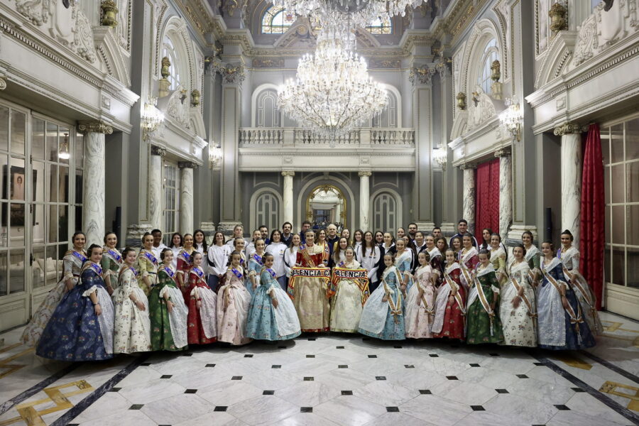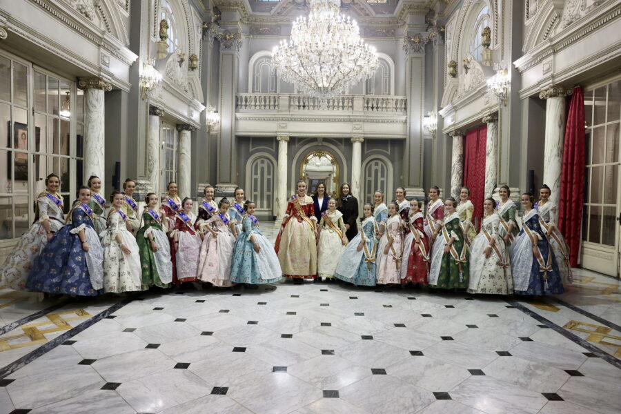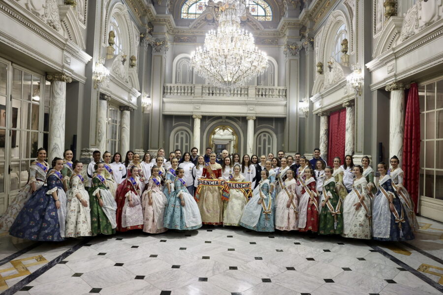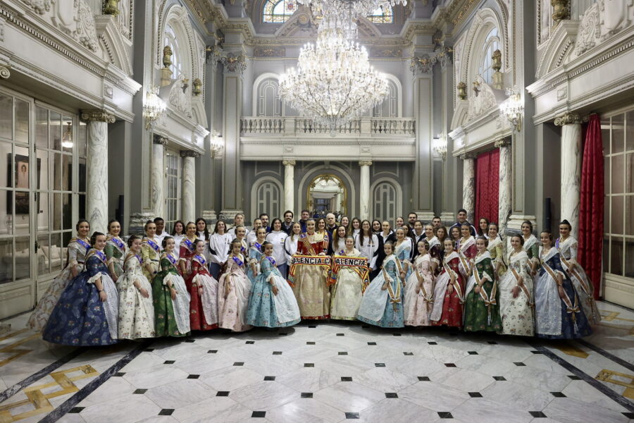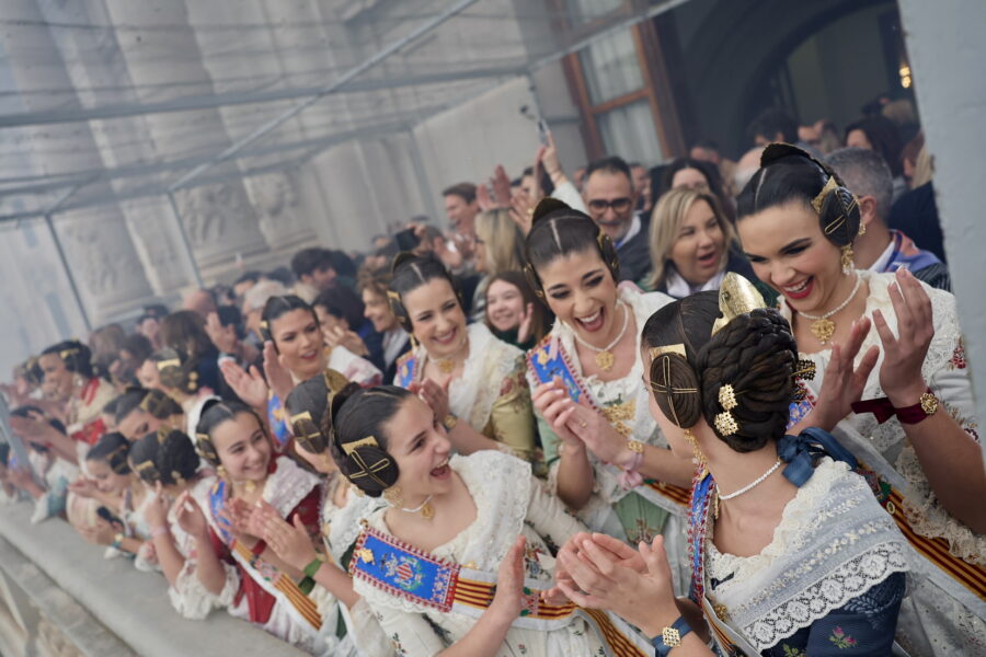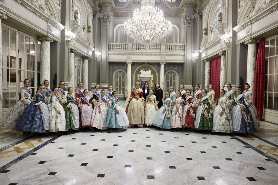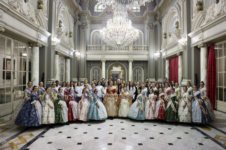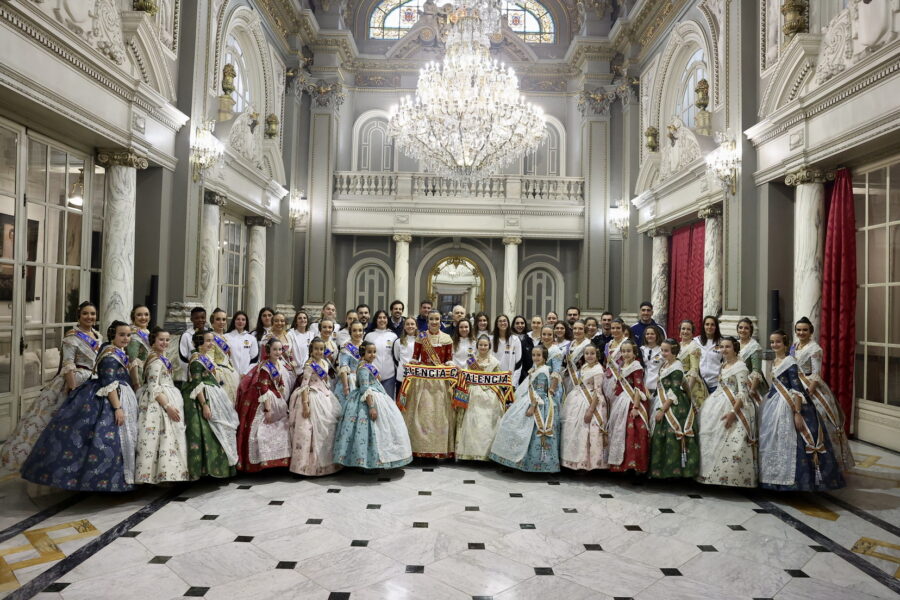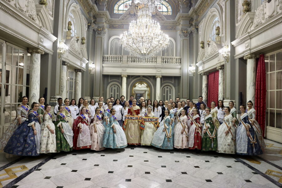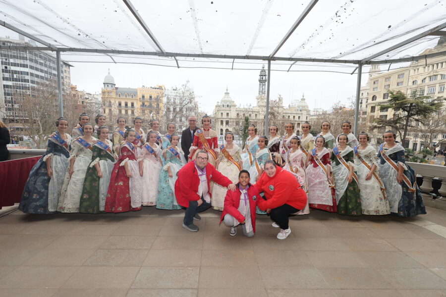 En el balcón de la Casa Consistorial han asistido como invitadas la mantenedora de la fallera mayor infantil, Cuchita Lluch, así como representantes del Binomio Universidad-Ciudad, el Club de Gimnasia Aeróbica, el Valencia Club de Fútbol Femenino, Miss Valencia y Mr- RNB Valencia 2026, además de integrantes de Berklee València.
