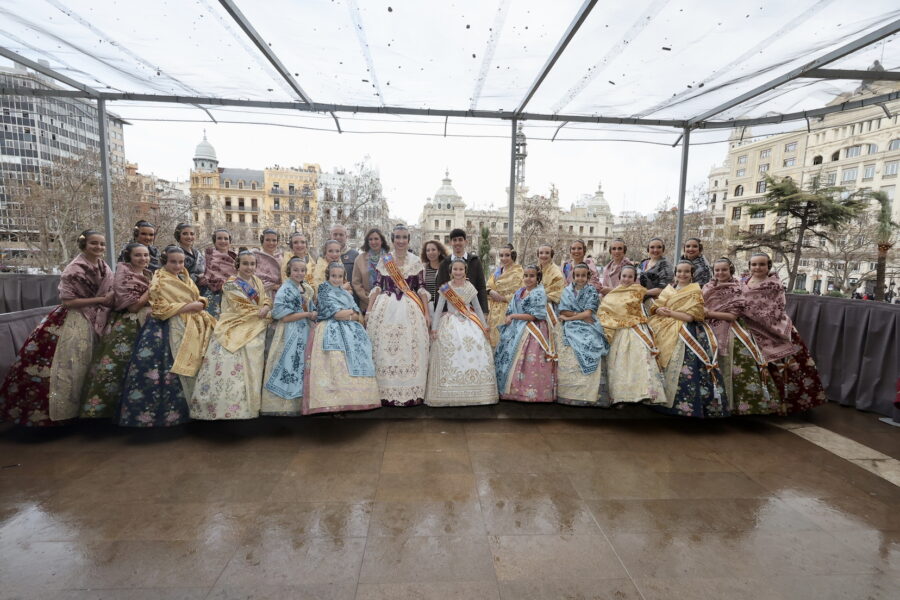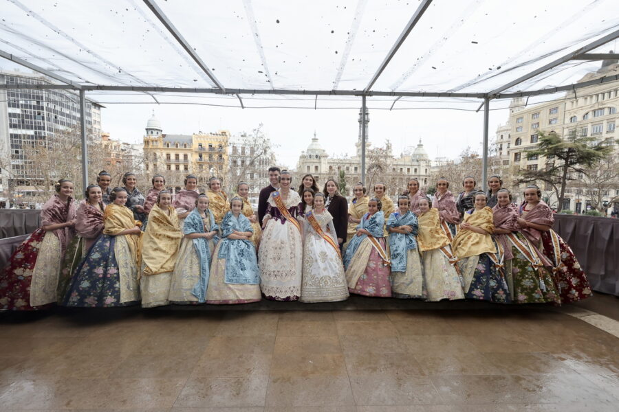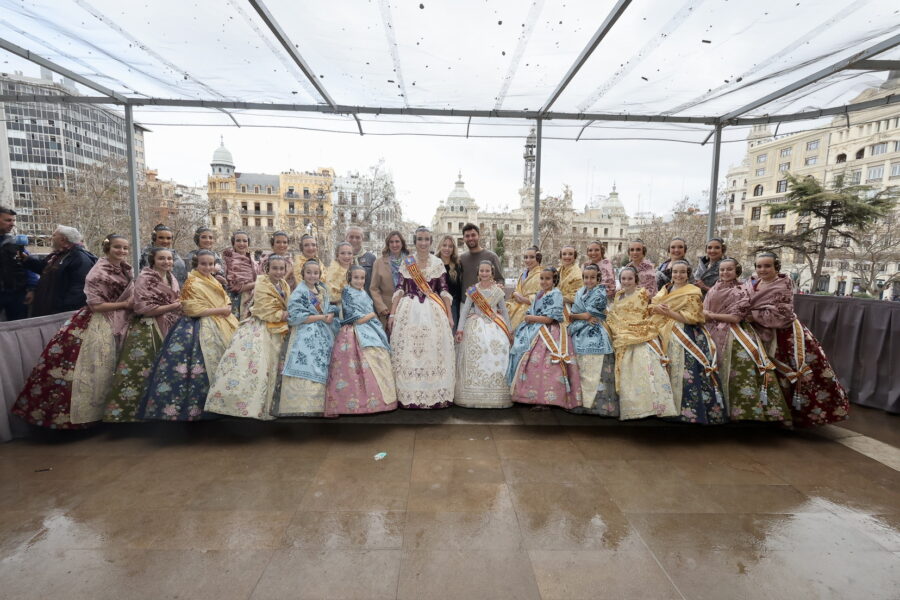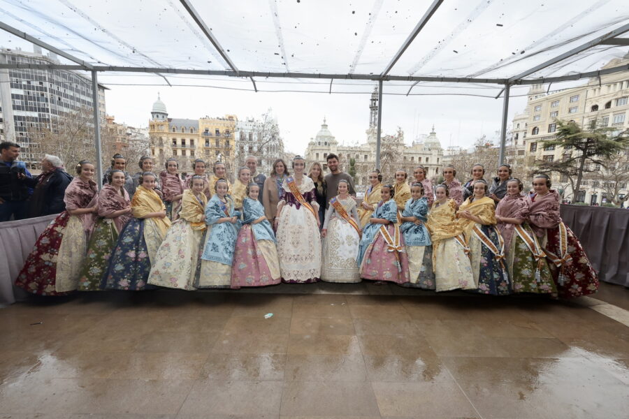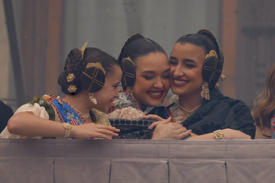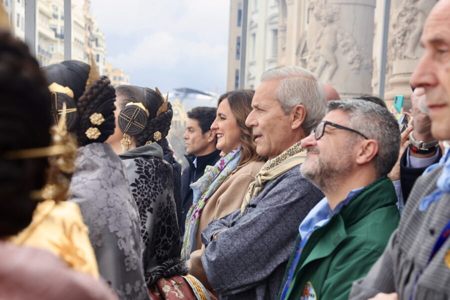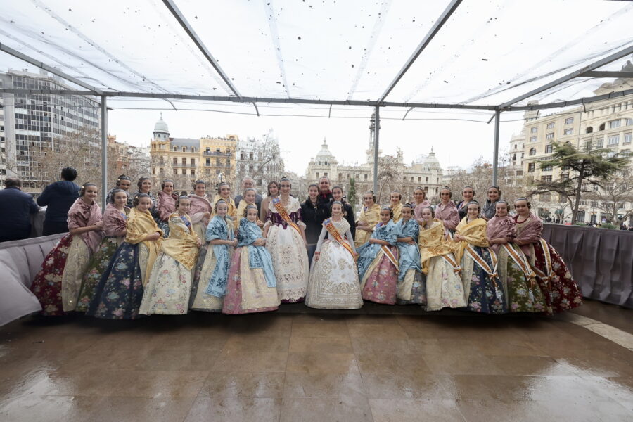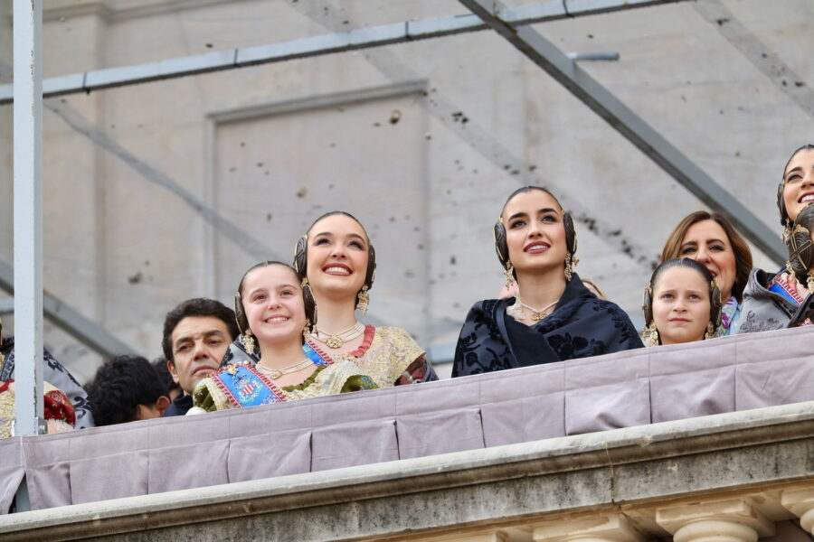 En el balcón también se encontraban la alcaldesa de València, María José Catalá, junto a las Falleras Mayores de València y sus cortes de honor, que han mostrado su apoyo al equipo pirotécnico.