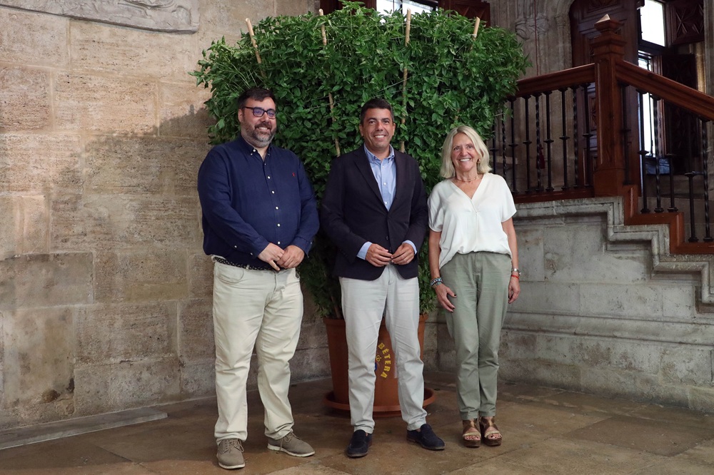 «Qué mejor lugar que la Diputació de València para que todos los pueblos de la provincia se sientan cerca de nuestras fiestas». Con estas palabras, la alcaldesa de Bétera, Elia Verdevío, ha hecho entrega de una alfàbega monumental que ya luce en el Palau de la Batlia, sede de la institución provincial.