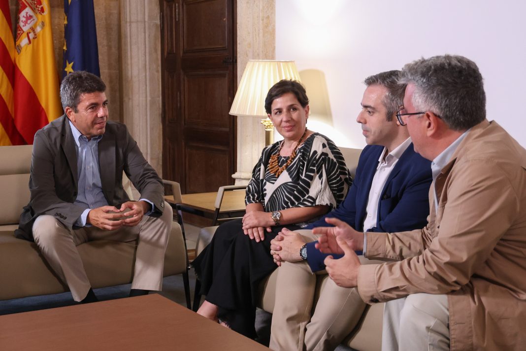 El president de la Generalitat, Carlos Mazón, se ha reunido con los promotores de la iniciativa Fòrum Jaume I 2028, una iniciativa cívica, cultural e institucional que se crea con el propósito de conmemorar el 750 aniversario del fallecimiento del Rey Jaume I.