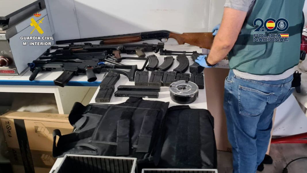 En estos registros se ha incautado medio millón de euros en billetes de diverso valor. Asimismo, se han intervenido 38 kilogramos de cocaína, 54 kilos de marihuana envasadas al vacío, un kilo de tusi (cocaína rosa), más de medio kilo de metanfetaminas,12 kilos de hachís, tres armas de guerra (un cetme LC, un Kalasthnikov y un subfusil ametrallados), dos armas largas robadas y una pistola de nueve milímetros con silenciador. Además de dos chalecos antibalas, una máquina de contar dinero, GPS, cinco vehículos varios de ellos de alta gama, tres motocicletas y un todoterreno robado, así como numerosa documentación.