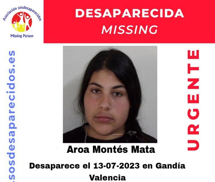 La joven Aroa Montés Mata lleva desaparecida desde el 13 de julio cuando fue vista por última vez en la localidad de Gandía.