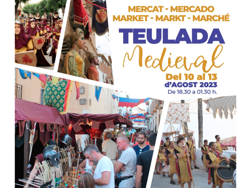 La concejalía de Cultura del Ayuntamiento de Teulada, delegada en Rosana Caselles, presenta el Mercado Medieval de Teulada 2023, del 10 al 13 de agosto en horario de 18:30h a 01:30h.