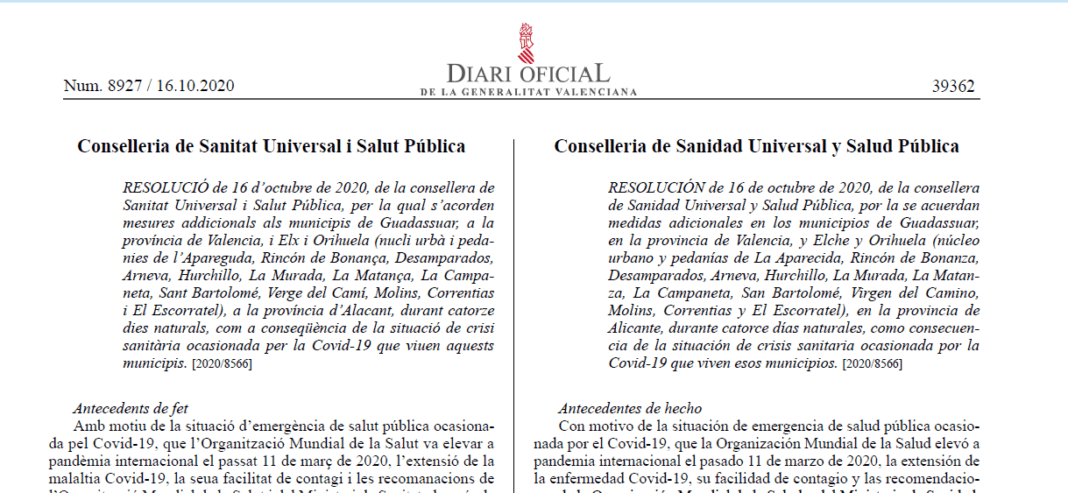 Estes són les mesures especials que Sanitat aplicarà en Guadassuar per a evitar l’expansió del coronavirus