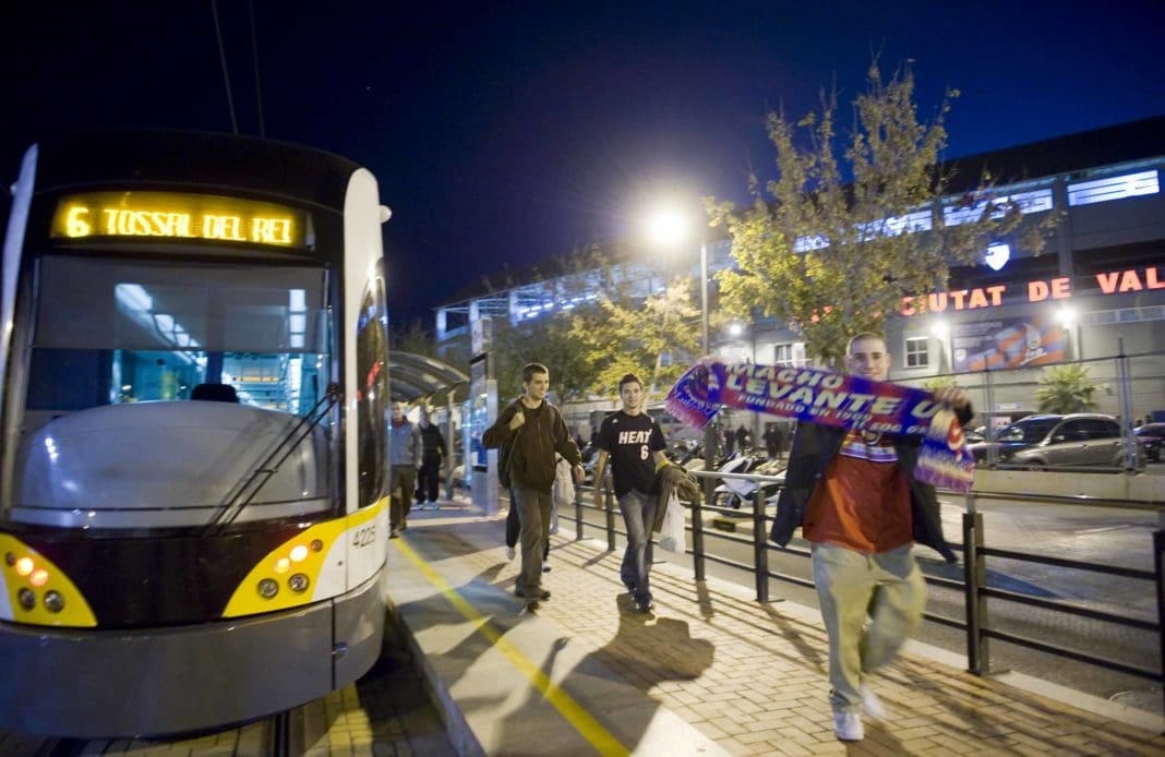 FGV ofrecerá servicio en la Línea 6 de tranvía (Marítim-Tossal del Rei), a la que pertenece la parada Estadi del Llevant, situada las puertas del estadio, tras la finalización del partido, en dirección a Doctor Lluch, a las 22.52 y 23.16 horas.