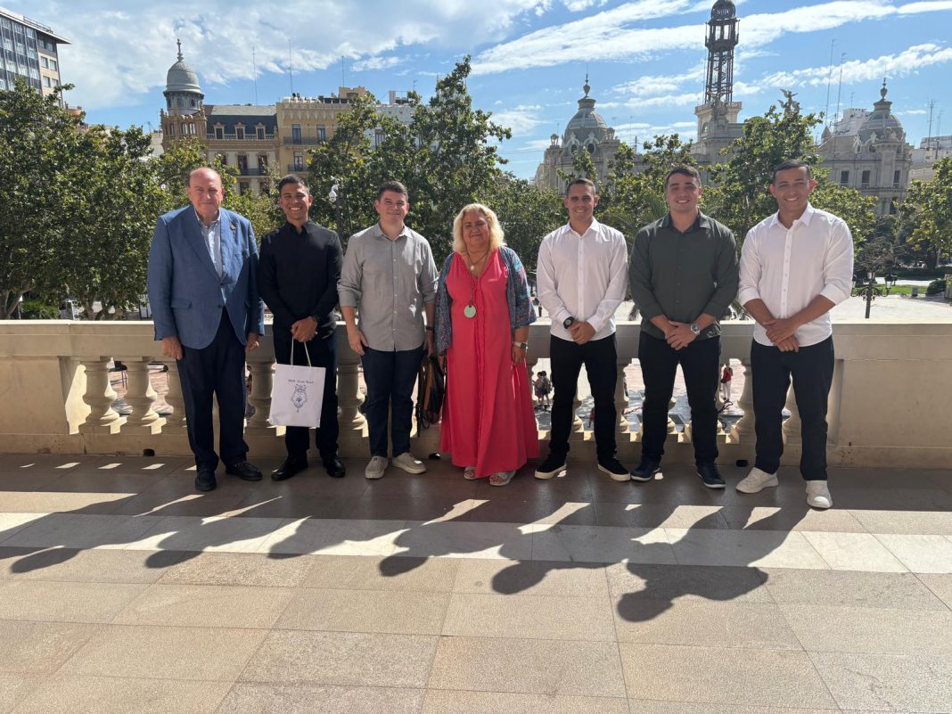 Una representación de la tripulación del buque escuela ‘Brasil’ ha visitado esta mañana el Ayuntamiento de València. El navío de la Armada brasileña se encuentra amarrado en el muelle sur del puerto hasta el próximo sábado 30 de agosto. La primera tenienta de Alcaldía y alcaldesa en funciones, María José Ferrer San Segundo, ha guiado a los militares en su visita a la Casa Consistorial.