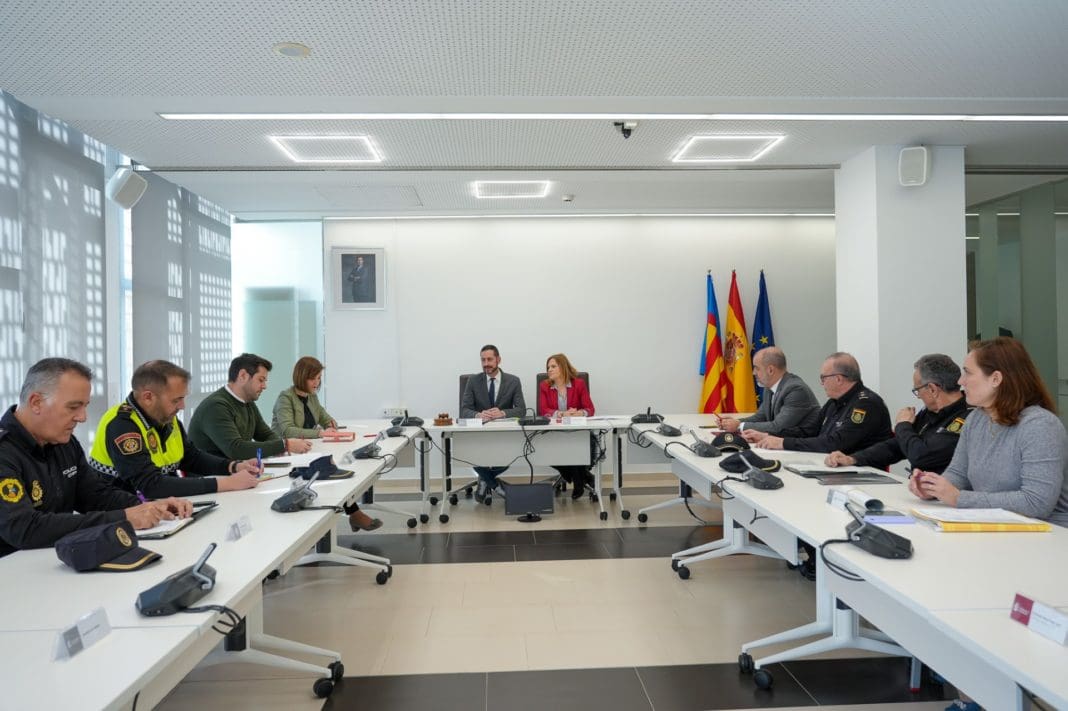 La reunión ha estado copresidida por el alcalde, Carlos Fernández Bielsa, y la delegada del Gobierno en la Comunitat Valenciana, Pilar Bernabé. También contó con la presencia de la vicealcaldesa, María Luisa Martínez Mora, el teniente de alcalde y concejal de Fallas y Seguridad Ciudadana, Ximo Moreno, el subdelegado del Gobierno, José Rodríguez, así como los responsables policiales de los tres cuerpos de seguridad, Policía Local, Nacional y Autonómica.