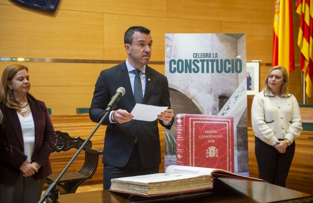 El presidente de la Diputació de València, Vicent Mompó, ha animado a los valencianos “a seguir construyendo juntos una España justa e igualitaria”. Lo ha hecho antes de leer el primer artículo de la Constitución, en un acto de lectura colectiva que la institución provincial ha organizado para celebrar el 45 aniversario de la Carta Magna.