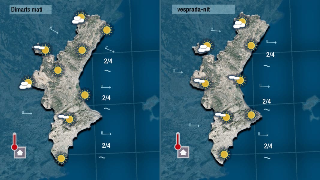 Esta noche han subido las temperaturas aún un poco más, y las máximas se mantendrán altas por el interior pero bajarán un poco a la costa dónde a partir de mediodía se dejará sentir el siroco.
