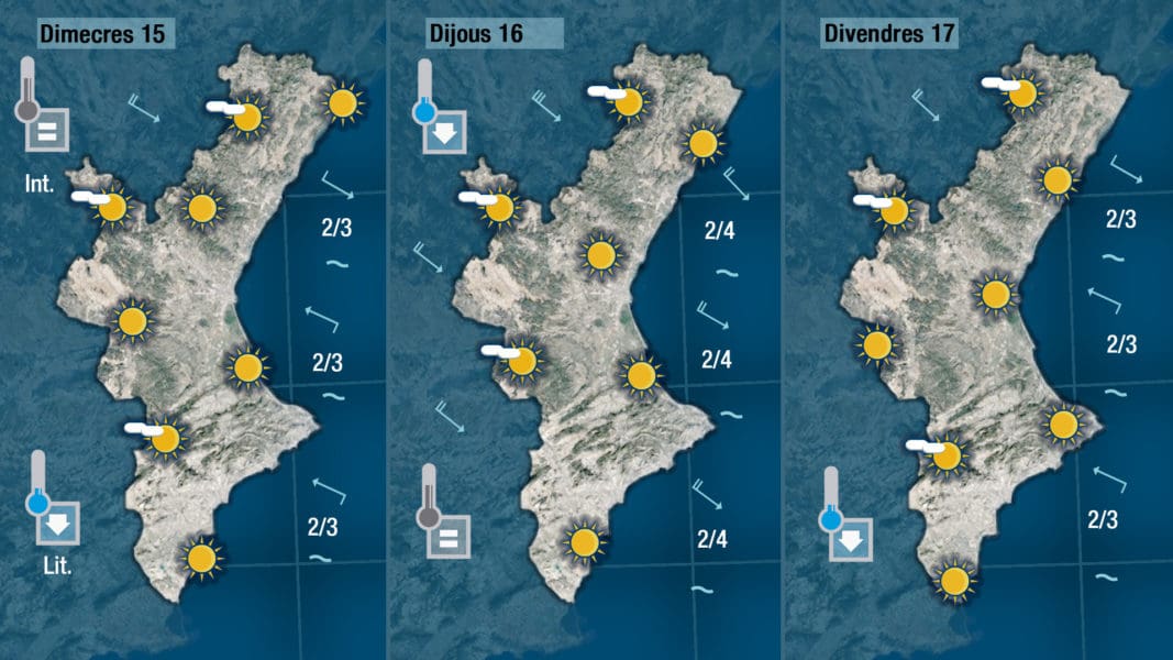 Jueves soplará de mistral y bastante más fresco y viernes volveremos a estar a las puertas de un nuevo fin de semana con pocos cambios de tiempo y temperaturas altas, muy altas para la época.