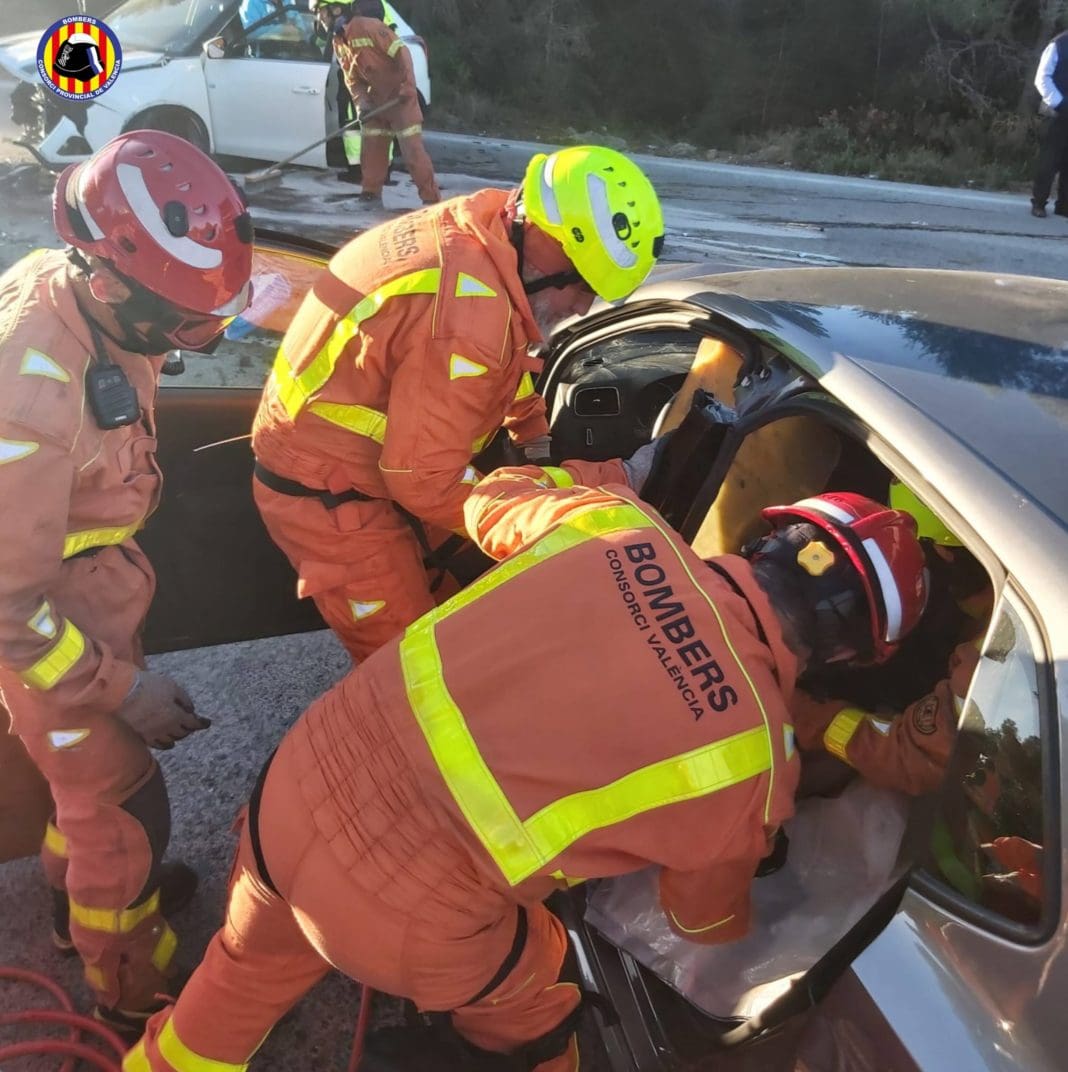 Una conductora ha quedado atrapada en el accidente en el que han chocado dos turismos esta mañana en la CV-370 en Riba-roja de Túria.