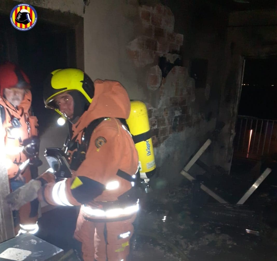 El Consorcio de Bomberos de València intervino ayer por la tarde a las 18:35 h a un incendio del tercer piso en un edificio de ocho alturas en la urbanización Marisma Azul de Sueca.