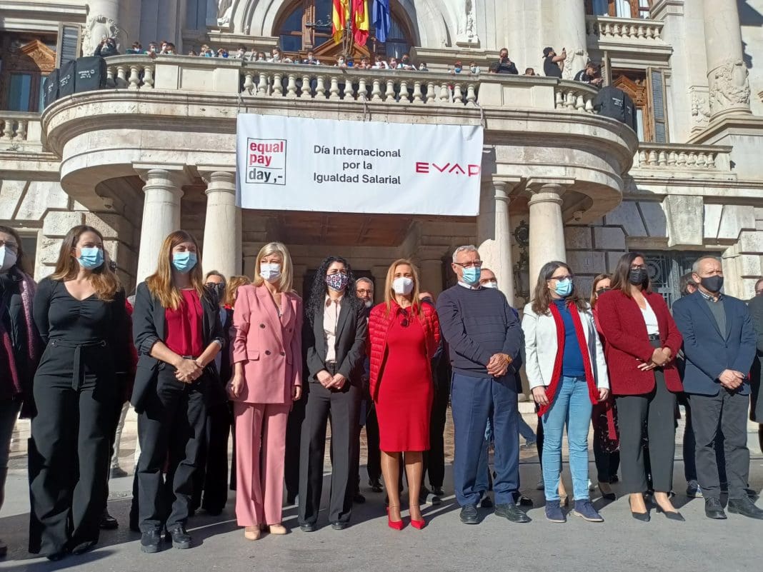 Además, la Asociación de Empresarias, Profesionales y Directivas de Valencia (EVAP) ha convocado un acto conmemorativo por el Día por la Igualdad Salarial (Equal Day Pay), en la plaza del Ayuntamiento de València, para reivindicar y denunciar la desigualdad salarial que sufren actualmente las mujeres. El acto ha contado con la presencia de la vicepresidente y consellera de Igualdad, Mónica Oltra; la presidenta de EVAP, Eva Blasco; el alcalde de València, Joan Ribó; la vicealcaldesa Sandra Gómez.