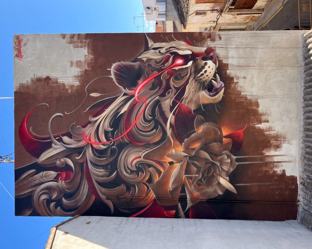 El mural candidato, situado en la calle Rey Don Jaime, fue realizado en el marco del Festival de Internacional de Street Art Graffitea Cheste 2024, celebrado en la localidad el pasado mes de mayo, y representa a un ocelote que vigila un callejón, con sus ojos que desprenden una filigrana roja, y cuyo cuerpo ocre está conformado por formas de plantas que combinan una estética entre barroca y futurista.