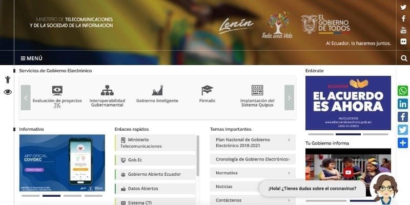 Amb el nom de ‘Catalina’ aquest chatbot distribueix la informació oficial específica sobre Coronavirus desenvolupada per les autoritats de la República de l’Equador. L’assistent virtual porta obert al públic dos setmanes, ha informat la companyia.
