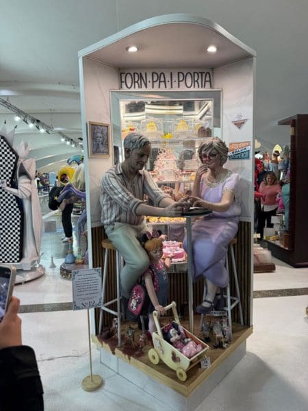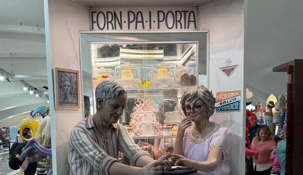 El ninot ganador representa una tierna escena protagonizada por una pareja de ancianos celebrando sus bodas de oro en un típico horno cafetería valenciano, transformado artísticamente en el ‘Forn Pa i Porta’. Con una estética cuidada al detalle, la figura muestra al anciano entregando un regalo a su esposa, evocando sentimientos de ternura y nostalgia que han conmovido tanto a visitantes como jurado.
