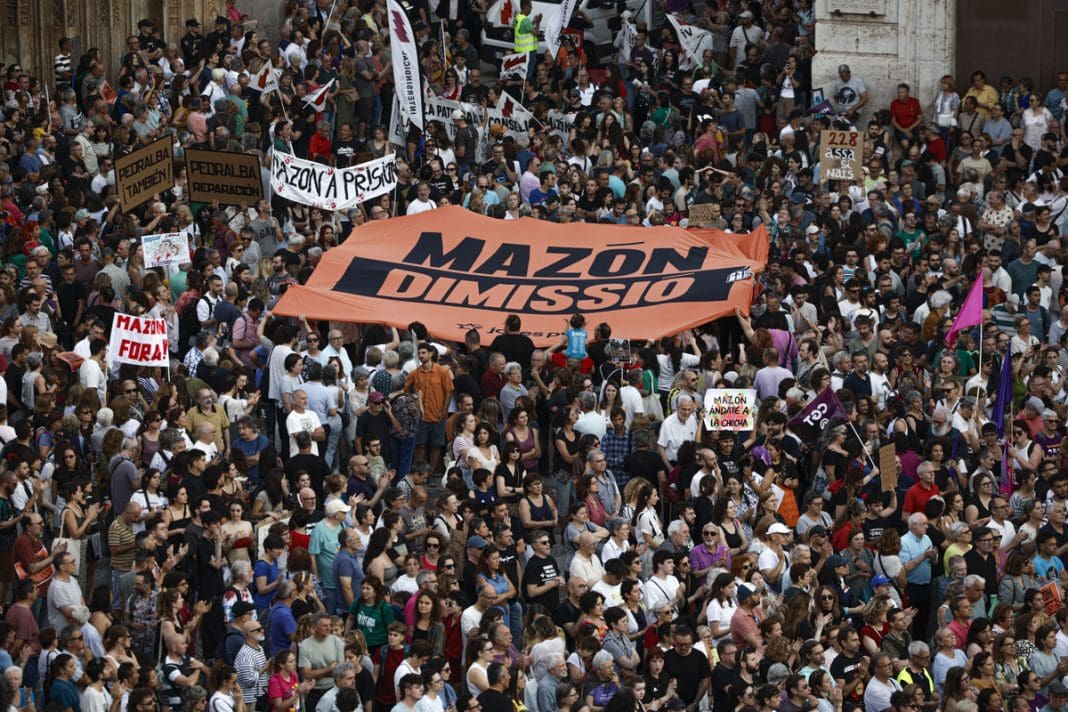 Los convocantes de la manifestación han exigido «responsabilidades políticas y penales, transparencia y verdad» y han asegurado que Mazón y su Consell son los responsables de que «una catástrofe natural se convirtiera en una catástrofe humana, cuando se desentendieron de sus responsabilidades en un acto de completa incompetencia».