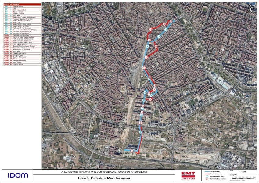Las primeras líneas en implantarse del nuevo Plan Director que ha preparado EMT para el horizonte 2025-2030 serán la que llegue a Turianova que será una prolongación de la línea 8 con paradas en la nueva zona de expansión de la ciudad y una nueva línea que se llamará 9-S que comunique con las zonas de Sociópolis.