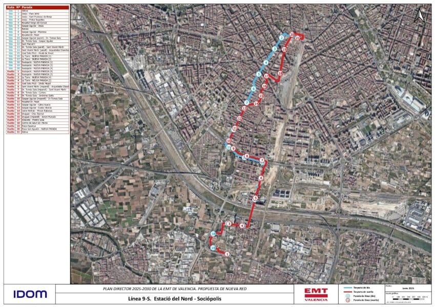 La nueva línea 9-S se concibe como una variante de la línea 9, siguiendo su mismo trazado desde la Estación del Norte hacia los barrios de Patraix, Hort de Senabre y Sant Marcel·lí. A la llegada a la Torre se bifurca para entrar dentro de Sociópolis y dar servicio, de este modo, a todo el conjunto de residenciales que se han consolidado en los últimos años.