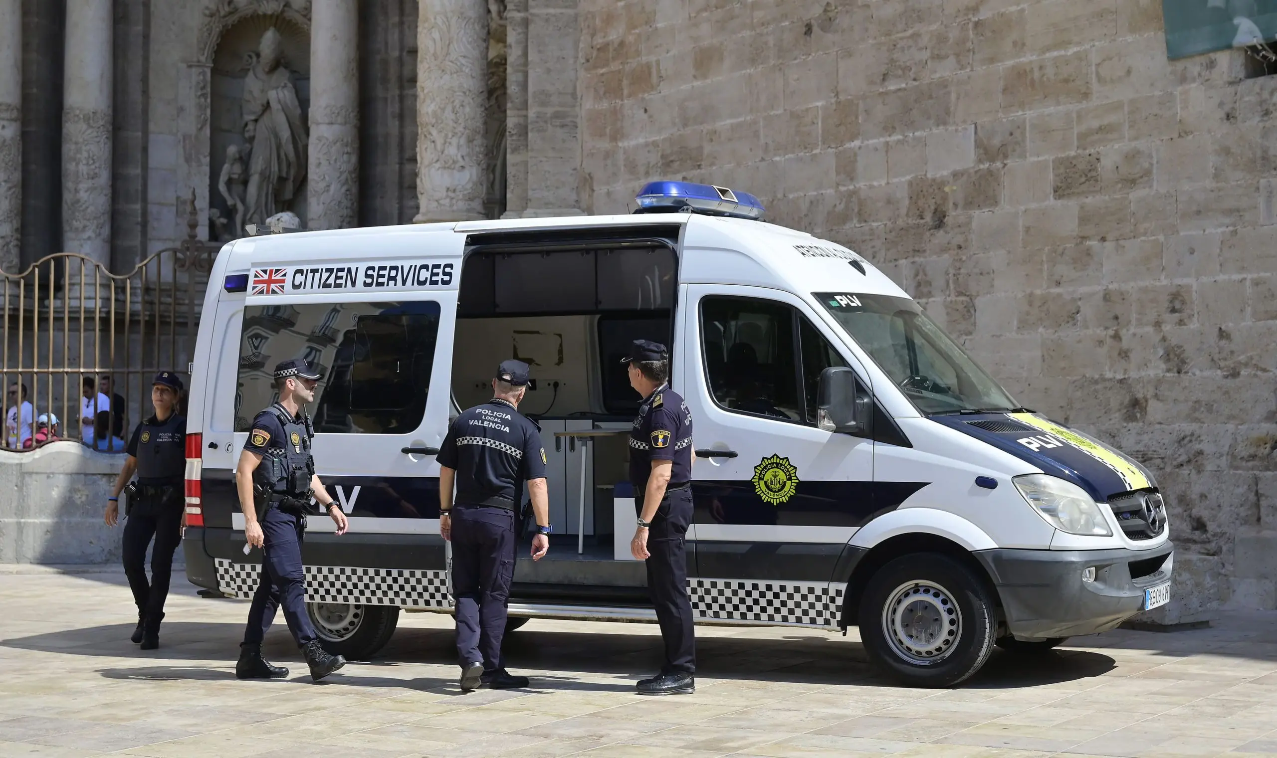 El dispositivo constará de 2 agentes patrullando a pie la zona de la plaza de L‘Ajuntament, 2 agentes patrullando a pie en la zona del Mercado Central y la Lonja, y 2 agentes y una Unidad Móvil Rotulada y de Atención Directa, que operará los 7 días de la semana, de 9:30 a 22:00 horas, en la plaza de la Reina.